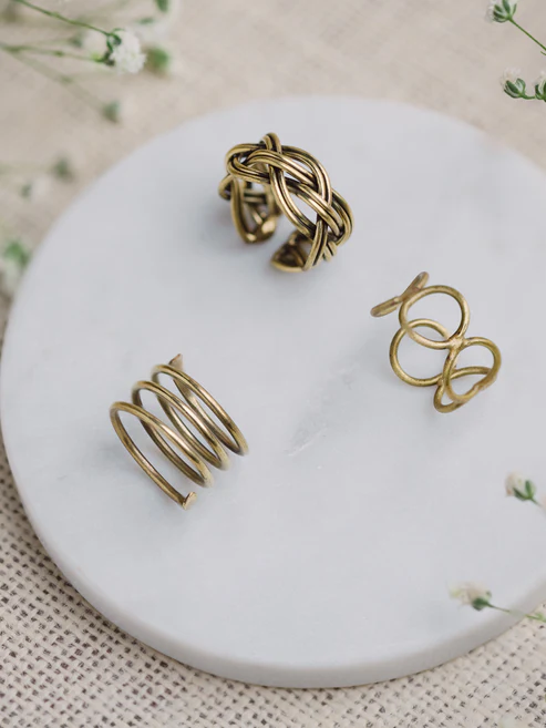 Strings Tri Statement Brass Rings